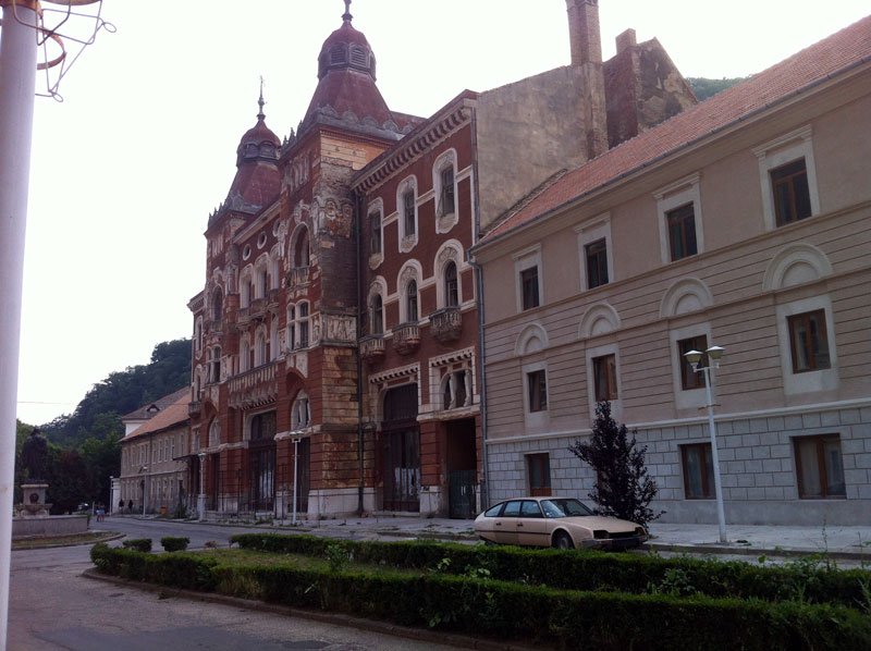 Nach einigen Kilometern erreichen wir das ehemalige Zentrum von Herkulesbad, wie es unter österreichischer Herrschaft hieß. Hier stehen verfallene Hotels im Barockstil neben Betonbauten aus der sozialistischen Ära. Letztere befinden sich in einem ebenfalls bedauernswerten Zustand. Wir lieben Lost Places, aber hier ist es alles andere als lost. Es ist jede Menge los und die Touris flanieren entlang des Verfalls.