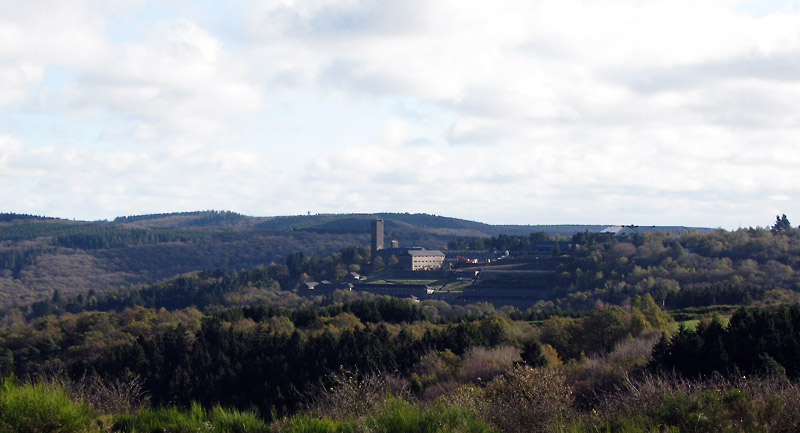 Auf dem Weg zurück zum Parkplatz beginnt ein heftiges Unwetter mit Hagel und Sturm. Wir sind froh, jetzt nicht auf dem Eifelsteig unterwegs zu sein. Etappe 3 (GC24AW5) Wieder ist es noch dunkel als wir in der Nähe von Schleiden zur finalen Etappe aufbrechen. Es geht wieder entgegengesetzt den Eifelsteig entlang, dieses Mal die offizielle Etappe 4. Heute ist es zwar windig aber wenigstens trocken. Sogar die Sonne lässt sich ab und zu einmal blicken. Wieder wandern wir einsame Wege, nur selten begegnen wir jemandem. Vogelsang erreichen wir noch vor Öffnung des Museums und umwandern die „Burg“ und haben so noch einmal ganz andere Perspektiven auf dieses spezielle Areal.