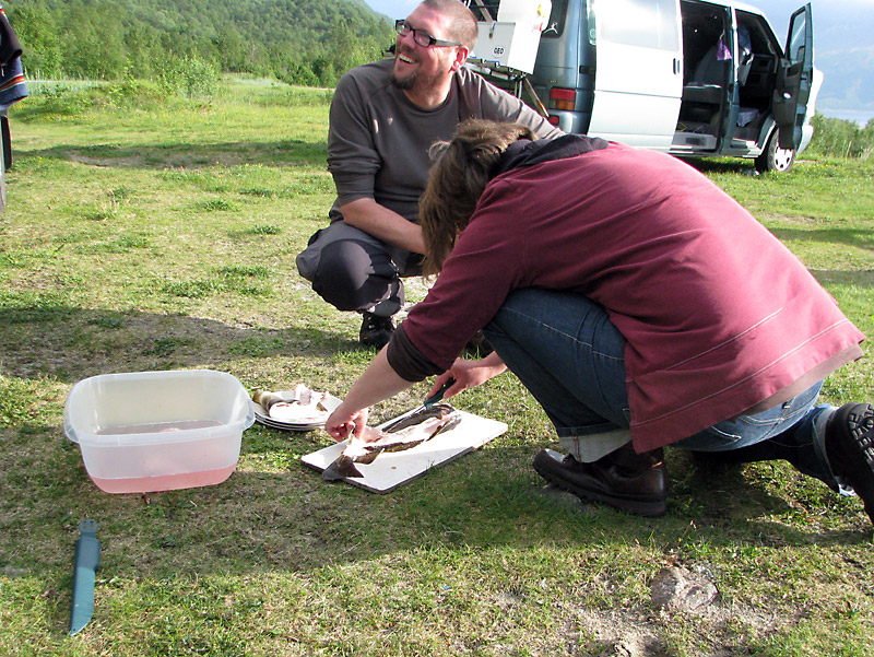 Wir nehmen den Fisch noch am Ufer aus.
