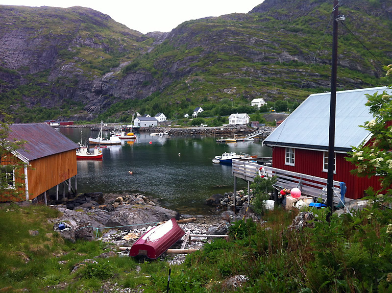 Am Fähranleger in Bodø klingelt das Telefon. Tina und Haiko haben einen Lagerplatz gefunden. Schön gelegen, Fischgründe um die Ecke. Und es gibt Fisch heute Abend! Wir machen uns auf den Weg.