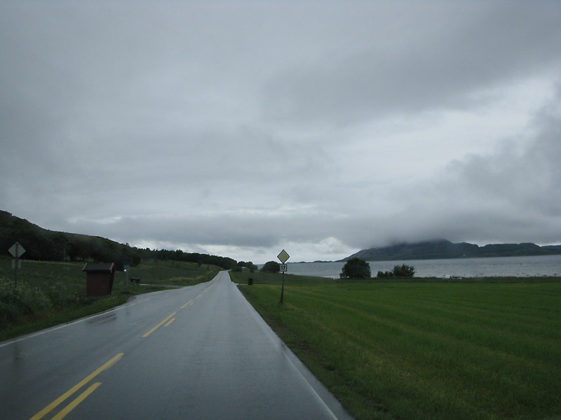 Der nächste Tag ist grau und wolkenverhangen. Wir fahren zunächst nach Brønnøysund hinein, tanken Diesel sowie Wasser und kaufen ein. Dann folgen wir der Fv17 weiter zu unserer letzten Inlands-Fährpassage von Vennesund nach Holm.