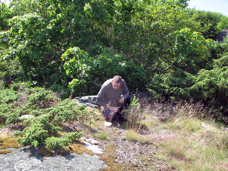 Am dritten Tag wollen wir wieder wandern. Am liebsten wäre ich wieder in die Berge des Pico Ruivo Zentralmassivs gefahren. Da ballen sich aber dicke Wolken. Wir wollen möglichst nicht schon wieder nass werden und planen um. Im äussersten Osten der Insel gibt es die Halbinsel São Lourenço mit einer schmalen Landbrücke und tollen Felsformationen. Am Parkplatz ist ganz schön was los. Wir reihen uns in den Strom der Wanderer ein und gehen los. Nach einigen hundert Metern biegen wir vom Hauptweg ab. Links von uns erhebt sich eine Bergspitze. Da liegt ein Cache (GC44RQE). Wir kraxeln hinauf und sind von der Aussicht schier überwältigt.