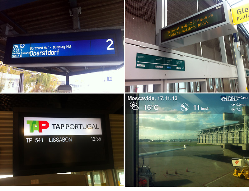 Es ist ein ruhiger Nachtflug nach Lissabon. Gegen zwei Uhr sind wir da. Unser Anschluss nach Düsseldorf geht um Sieben. Also hauen wir uns in einer Wartezone hin und versuchen ein wenig zu schlafen. Eine Nacht am Flughafen wollte ich immer schon einmal verbringen.