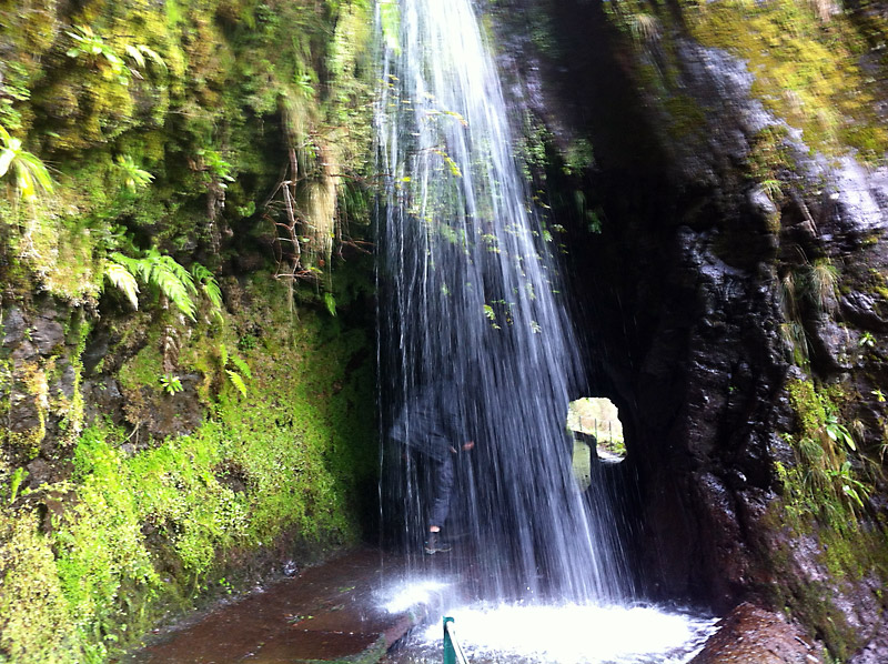Auf dem letzten Stück zur Schlucht gibt es einen Tunnel mit Zwangsdusche. Danach folgt ein unwirklicher kleiner Talkessel. Von überall hört man das Wasser rauschen. Dann stehen wir drin. Der Caldeirão do Inferno! Der ist zwar nicht so eng wie der Caldeirão Verde, dafür aber doppelt so hoch. Ich hatte daraufhin getwittert: „Kann man nicht erklären, muss man sehen.“ Das fasst es ganz gut zusammen, denke ich.