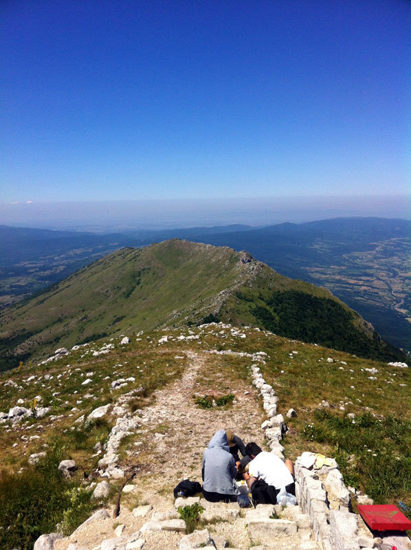 Nachdem wir die Letterbox (GC46Q4F) mit schöner Geschichte in einem verlassenen Bauernhof geloggt haben, machen wir uns auf zum Pico Ruivo Do Paúl von dort hat man einen schönen Blick auf das Zentralmassiv. Da sind wir gestern unten drunter durch gegangen.