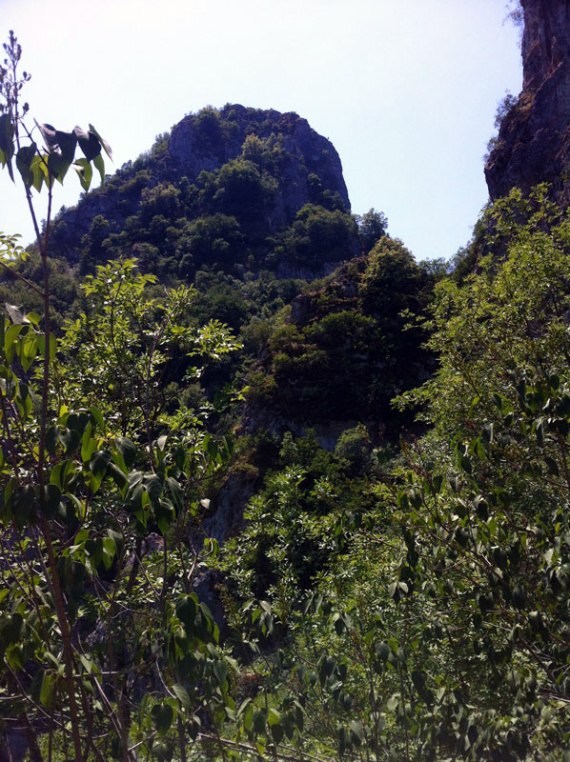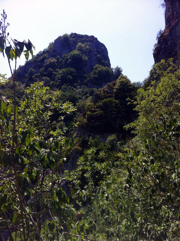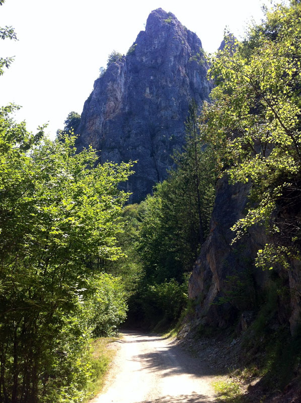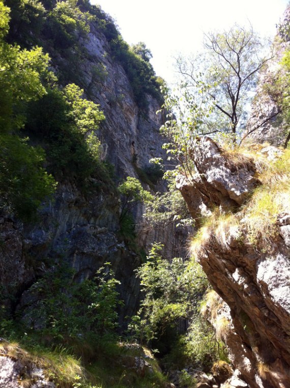Als wir aus dem Tunnel raus sind, erst einmal leichte Verwirrung. Welchen Weg nehmen? Das GPS ist hier nutzlos. Zwischen den hohen Felswänden findet es keinen Fix. Die Lösung: Kurz vorm Ende des Tunnels muss man durch ein Felsloch abbiegen.