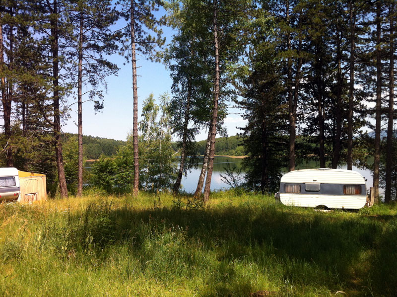 Nach dem Abendessen kommt der junge Platzwart mit einem Tablett und einem Kanister quer über den Platz zu uns an den Tisch. „Šljivovica, local brand!“ Der Kanister hat kein Etikett. Trotzdem nehmen wir an und werden später noch lernen, dass hier jeder seine eigene „local brand“ selbst herstellt.